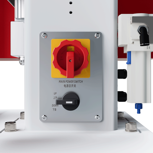 10、立柱右側(cè)設(shè),機(jī)頭升降開關(guān),便于調(diào)模對(duì)模,電源開關(guān)獨(dú)立控制